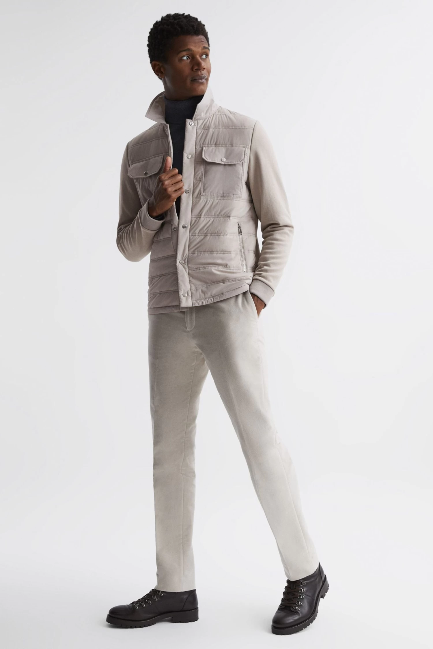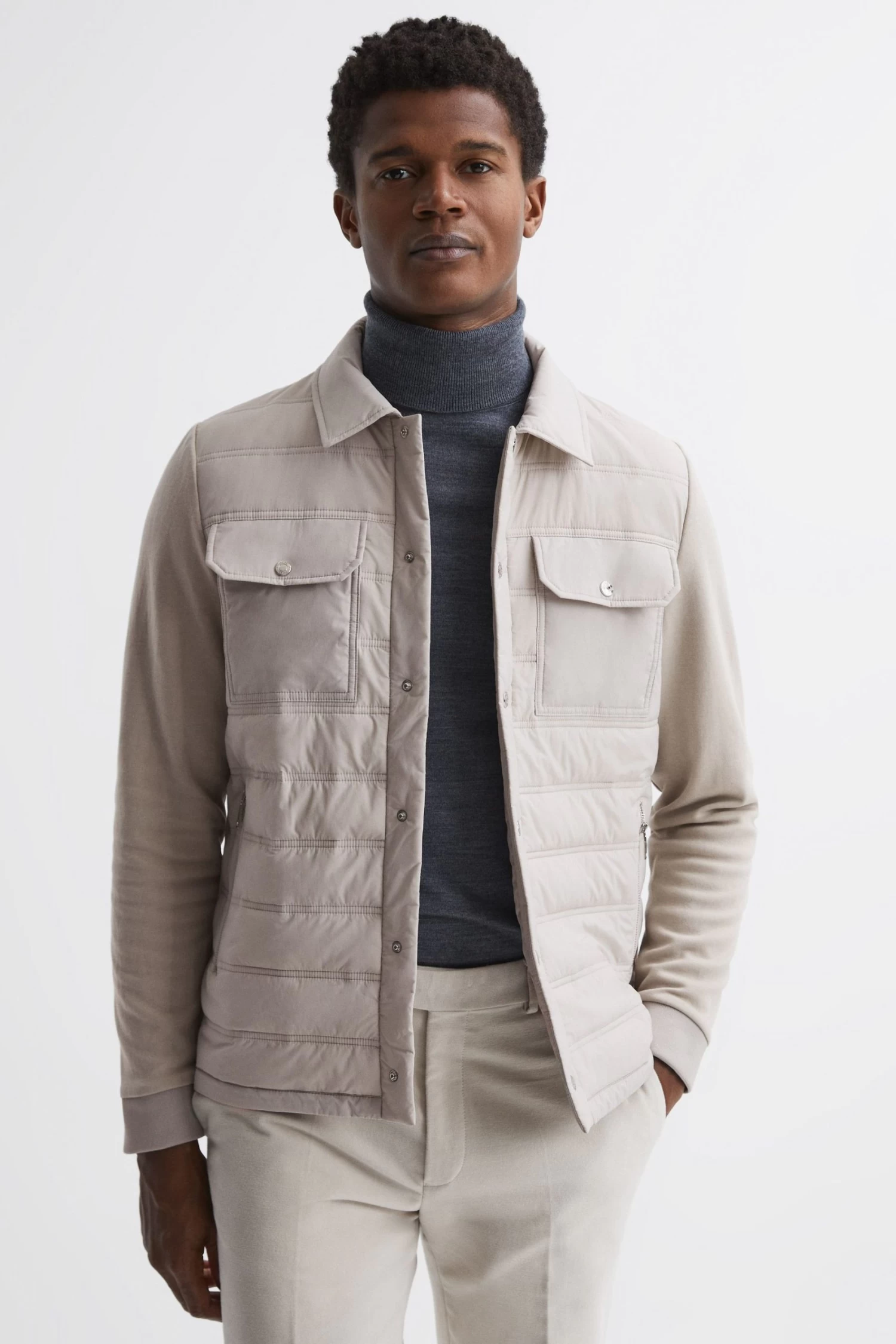 The Roddie jacket is constructed from a hybrid quilt and knit fabrication, giving equal parts comfort and style. It’s cut with a point collar that lends smart appeal, and it features a press-stud closure. Pockets are added for a practical wear. Adopt the Roddie into your wardrobe to make the most of cooler temperatures. Point collar. Long sleeves. Hybrid quilt and knit fabrication. Flap pockets. Press-stud closure. Smawarm® filling offers excellent heat-keeping capabilities. The model is wearing a size M. Measurements of model: Height 6ft 2.5 / 189cm.