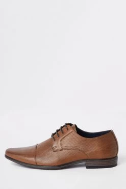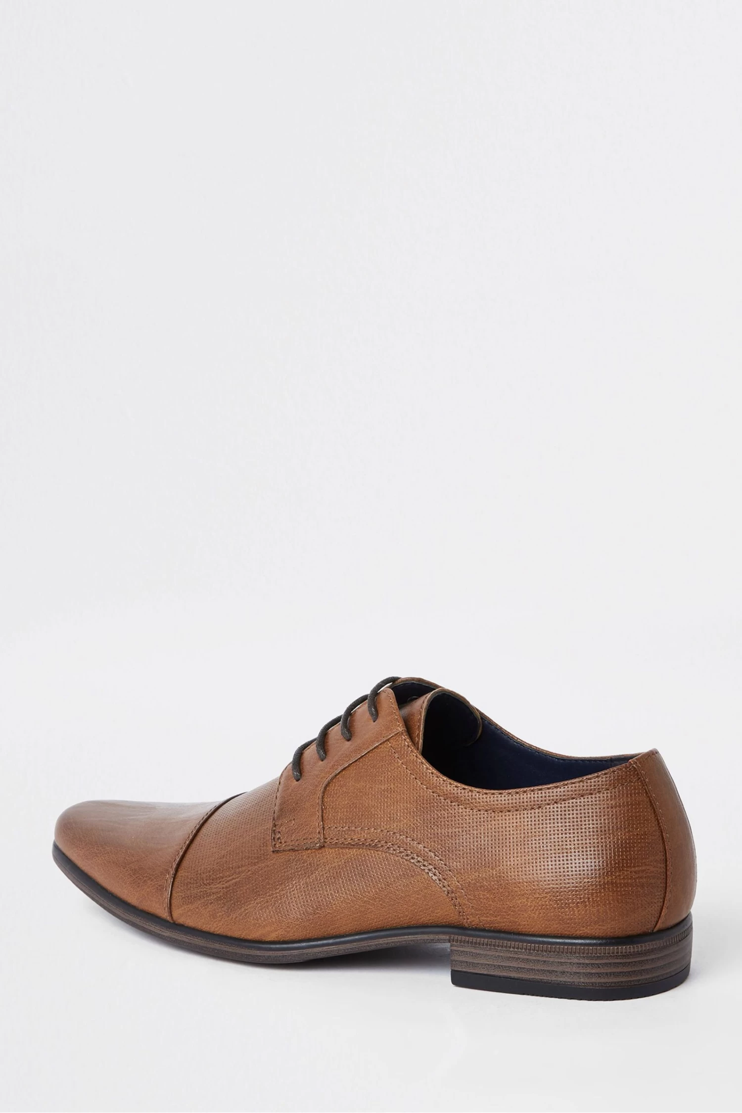 Faux-leather fabric. Embossed textured detail. Lace-up fastening. Point toe. Toe cap detail. Low stacked block heel.