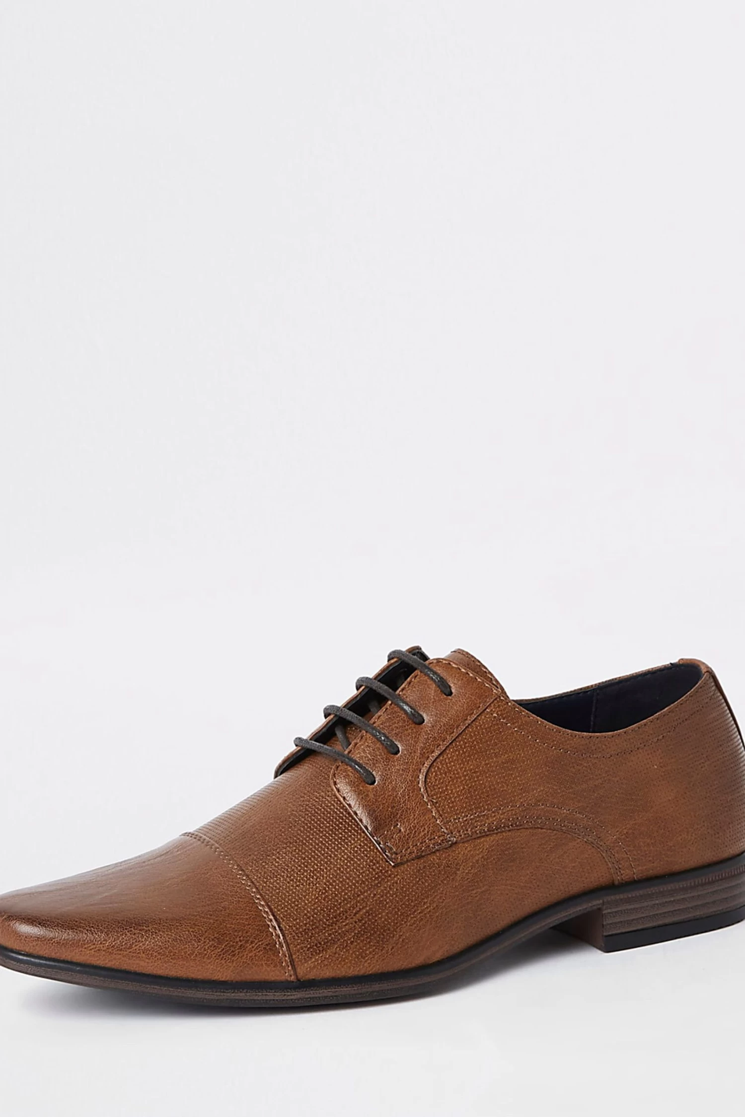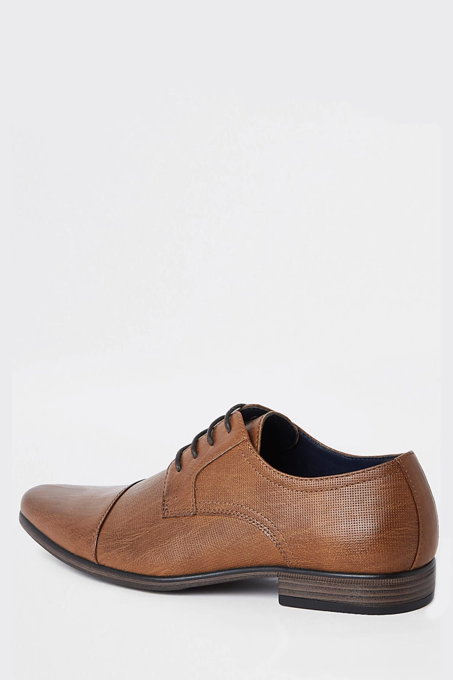 Features wide fit, faux leather fabric, embossed textured detail, lace-up fastening, point toe, toe cap detail and low stacked block heel.