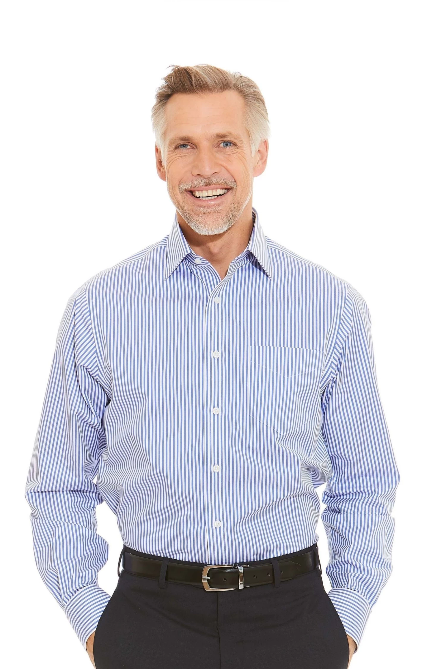 Suitable for smart occasions, this classic twill non-iron shirt has been decorated with a crisp stripe that demands attention. Breathable and luxuriously soft, it features a curl-resistant windsor collar, long tails and single cuffs.