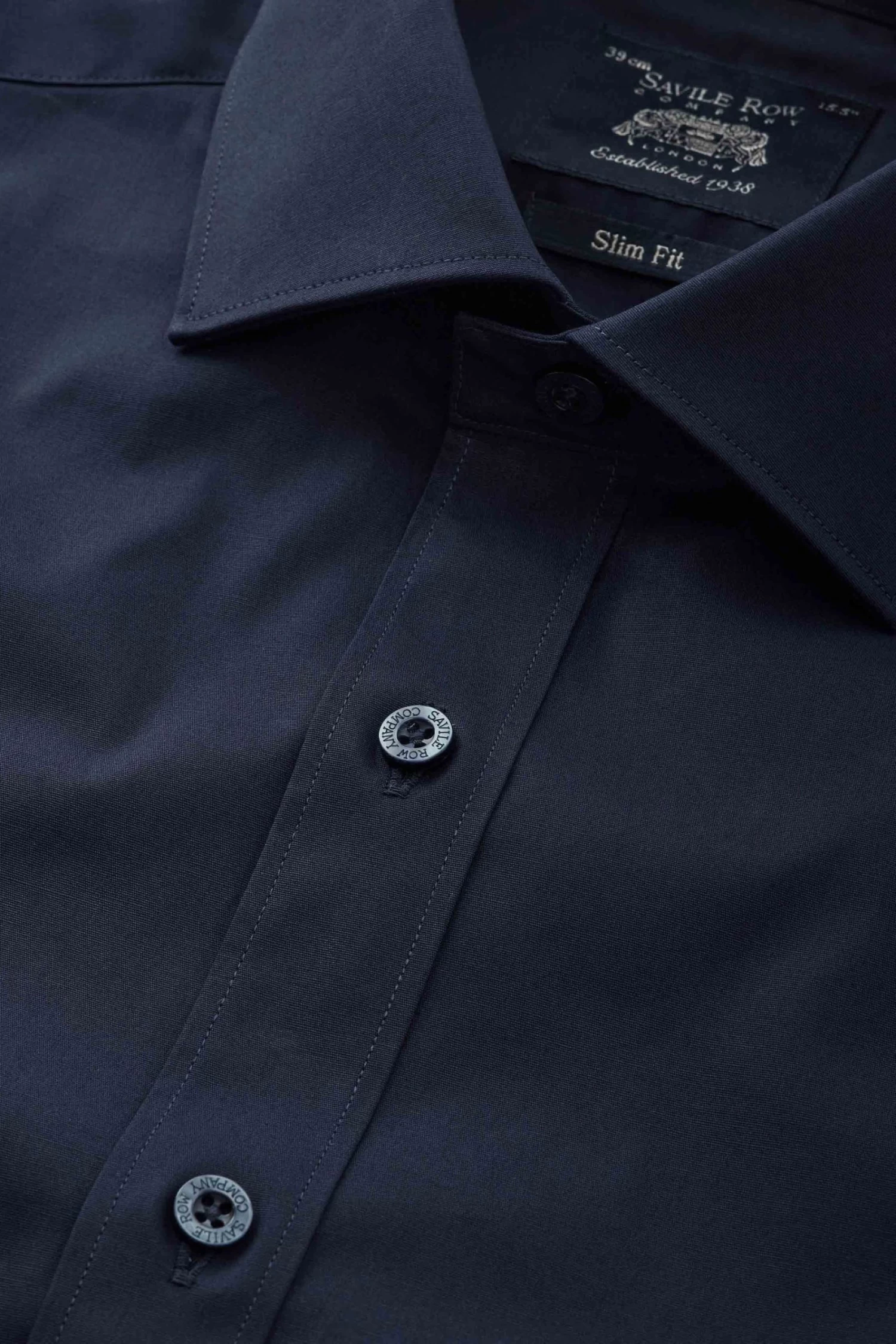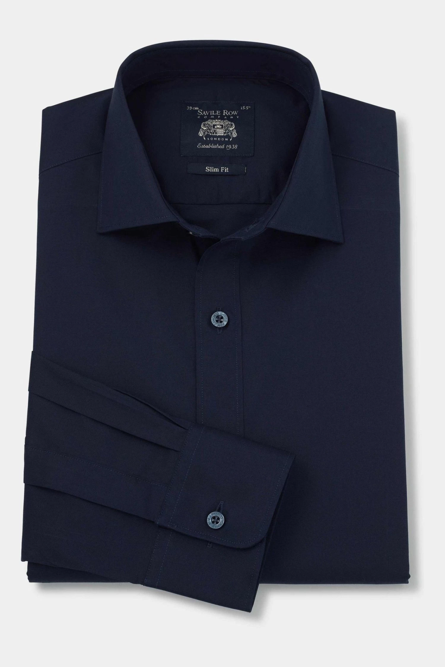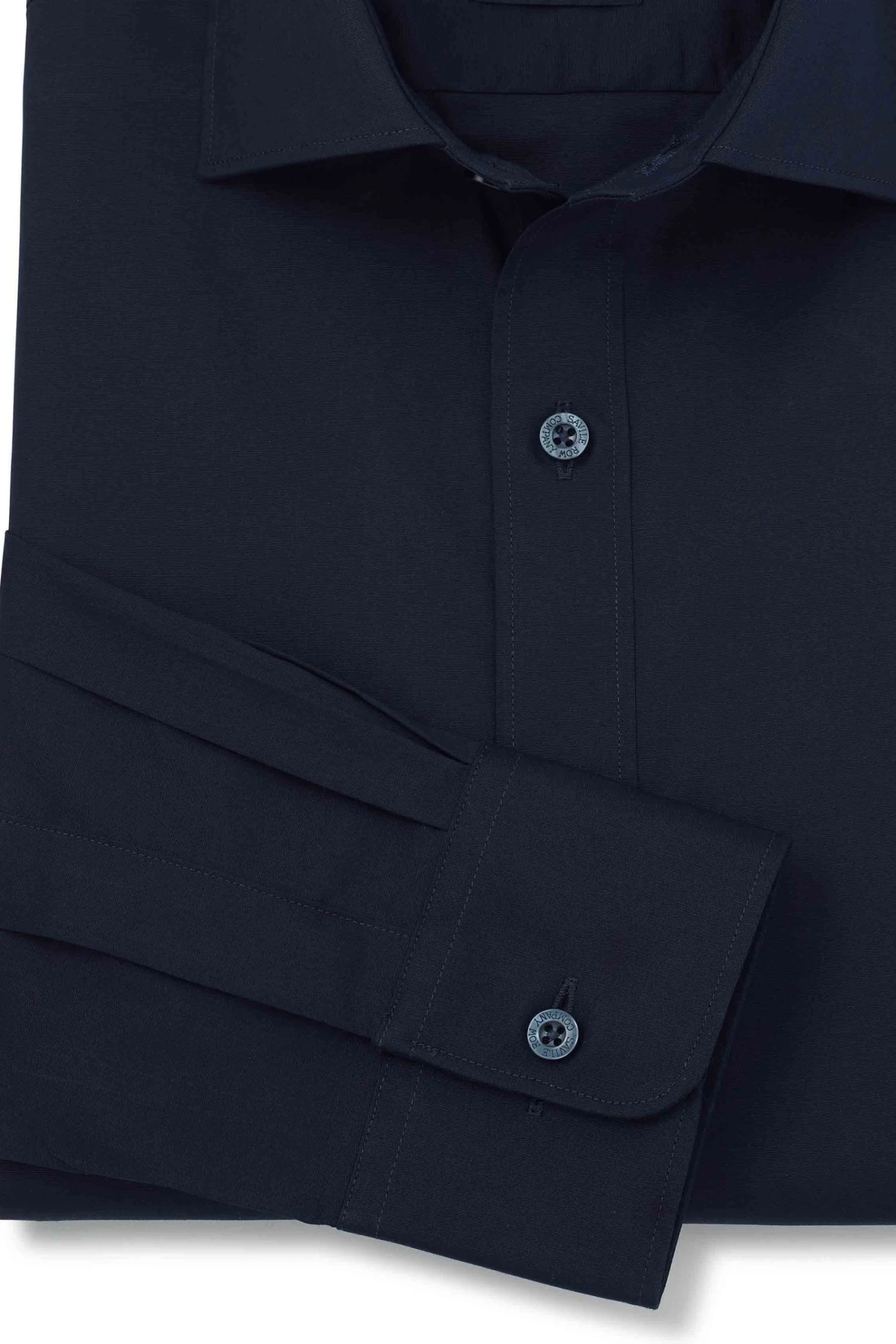 As comfortable as it is stylish, this men’s navy formal shirt has been given a hint of stretch that helps the fabric move with you. A fine option for long days in the office, it’s finished with a curl-resistant collar and single cuffs.