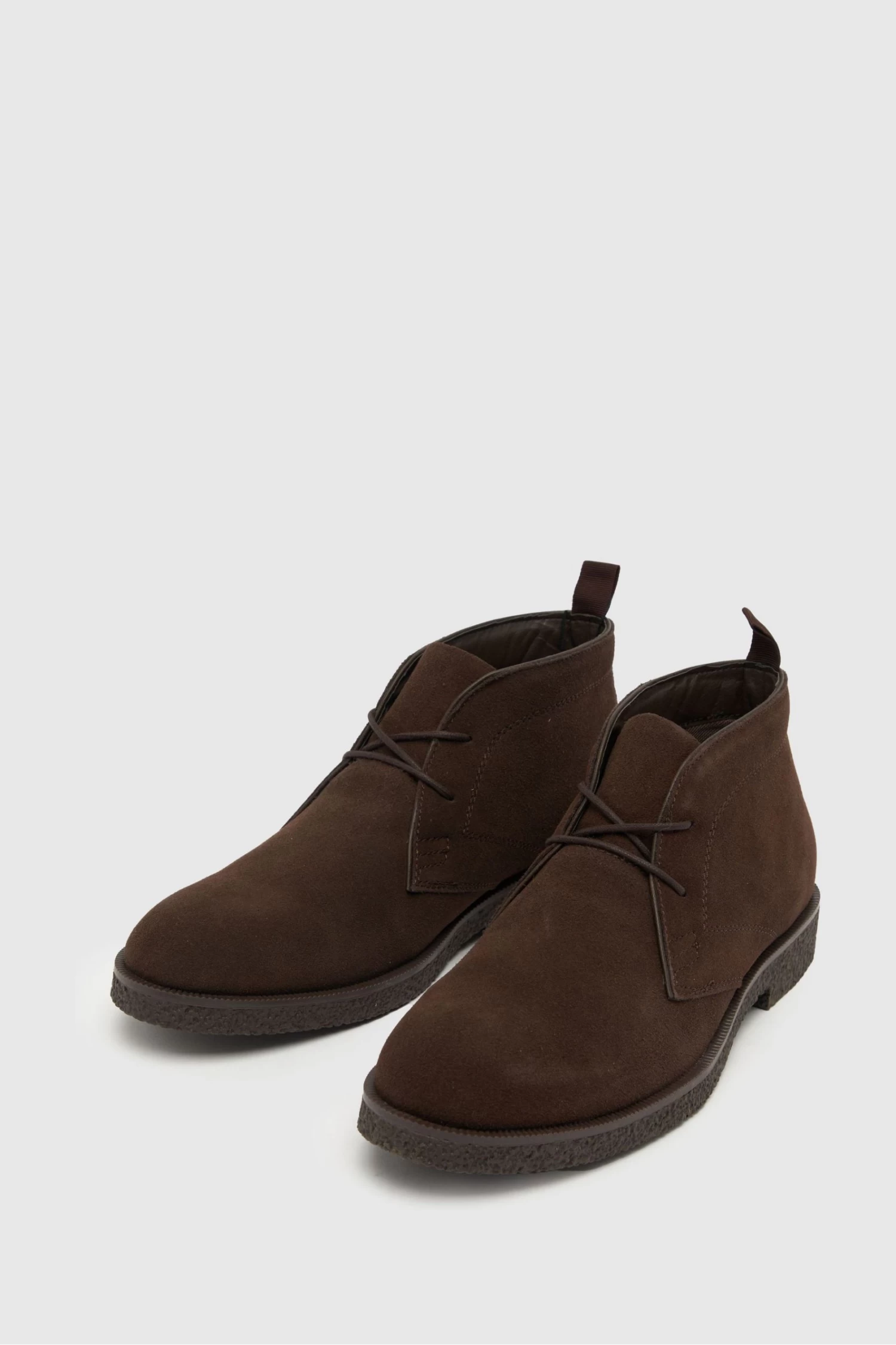 A new addition to the schuh collection, the Darius Desert Boot! Boasting a brown suede upper with the classic desert boot profile. Simple panelling and visible stitching bring rustic vibes to the look. Complete with a textured rubber sole.