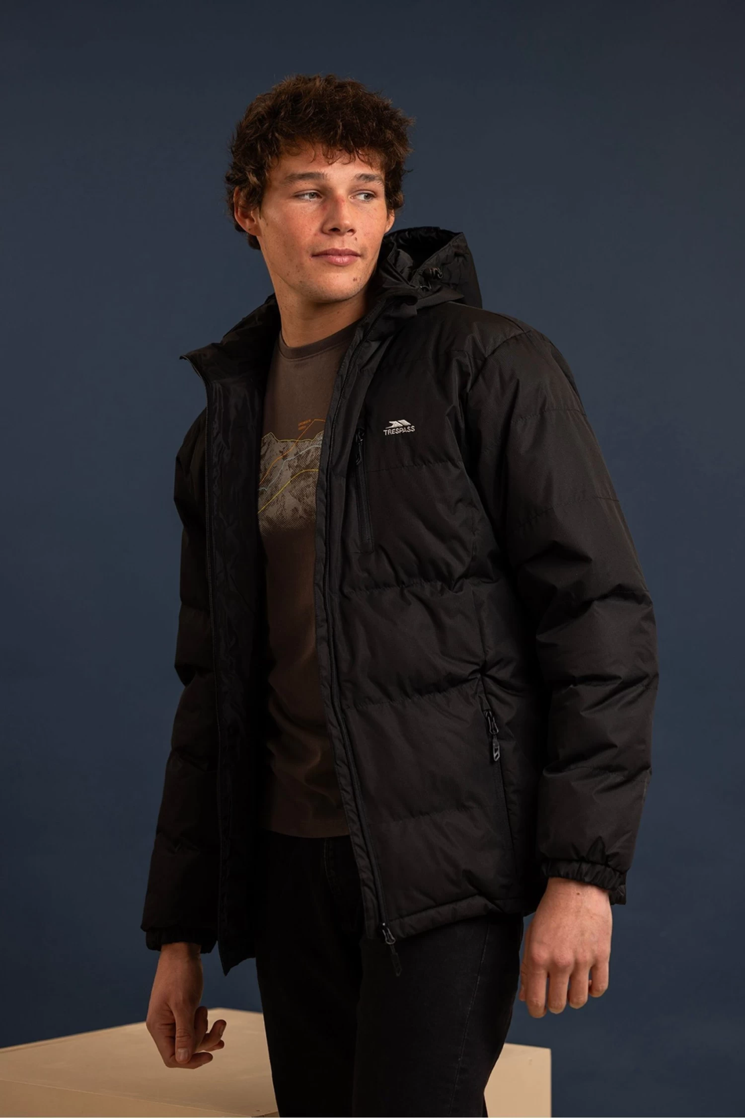 Featuring padded jacket with zip off hood, elasticated cuffs, and three zipped pockets.