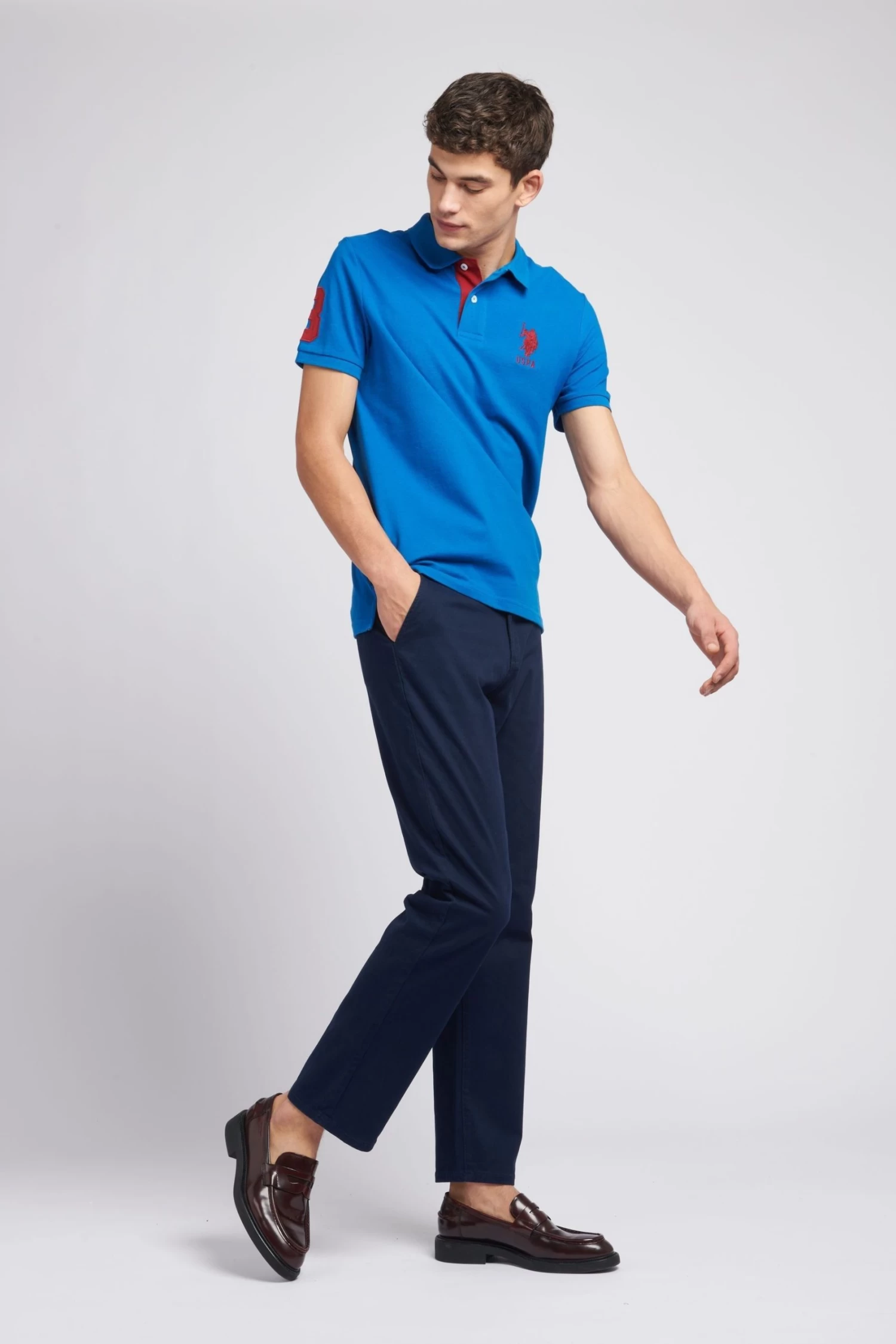 The U.S. Polo Assn. soft 100% cotton is essential to wear all year round. The Player 3 regular fit polo shirt is a comfortable and breathable everyday basic, finished in a button-down placket and collar, featuring the ‘3’ patch and embroidered double horsemen for the USPA stamp of authenticity.